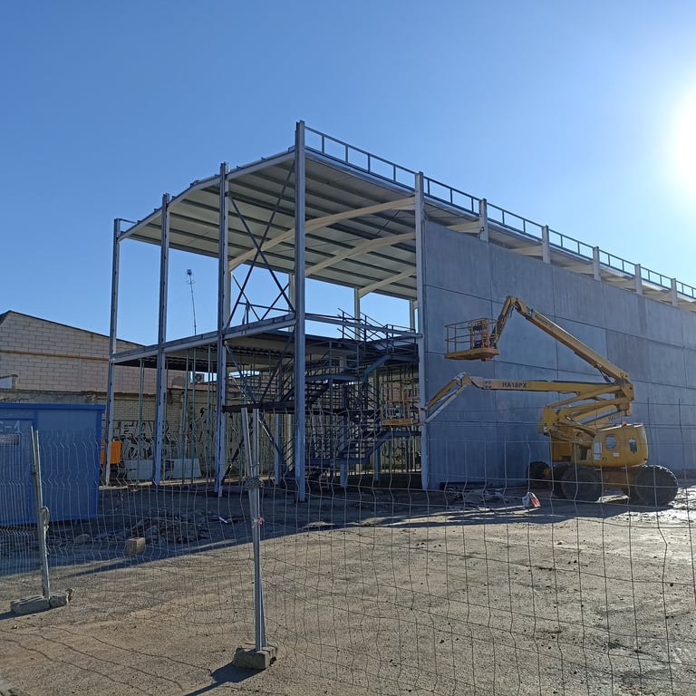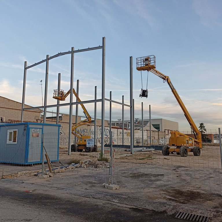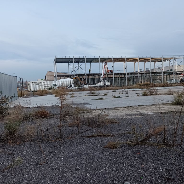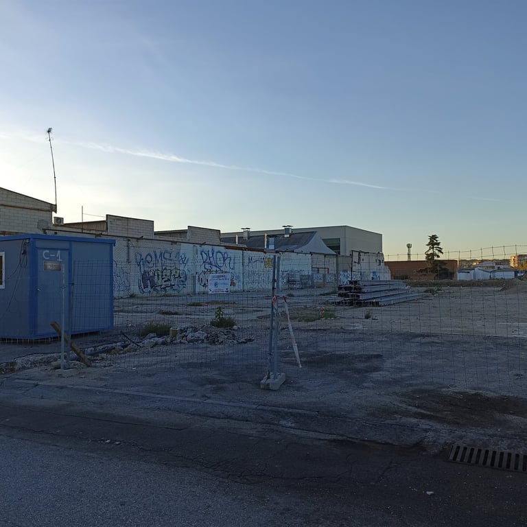 Si vas andando desde Av. Constitución, por la acera más próxima al Supermercado ALDI, pasa el túnel y te encuentras unas escaleras. Si no puedes subirlas, sigues unos metros por la acera y las rodeas. Una vez arriba verás un parking público y al fondo el Parque del Ozono. A la izquierda del parque está la calle del Aluminio, paralela a las vías del tren, y a escasos metros el local.